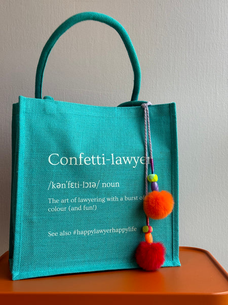 ‘Confetti-Lawyer’. It was thrown at us as an insult… turns out we don’t mind a bit of confetti mixed with our lawyering… So we have ‘merch’d’ the bejesus out of it now because may as well turn those lemons into lemonade!